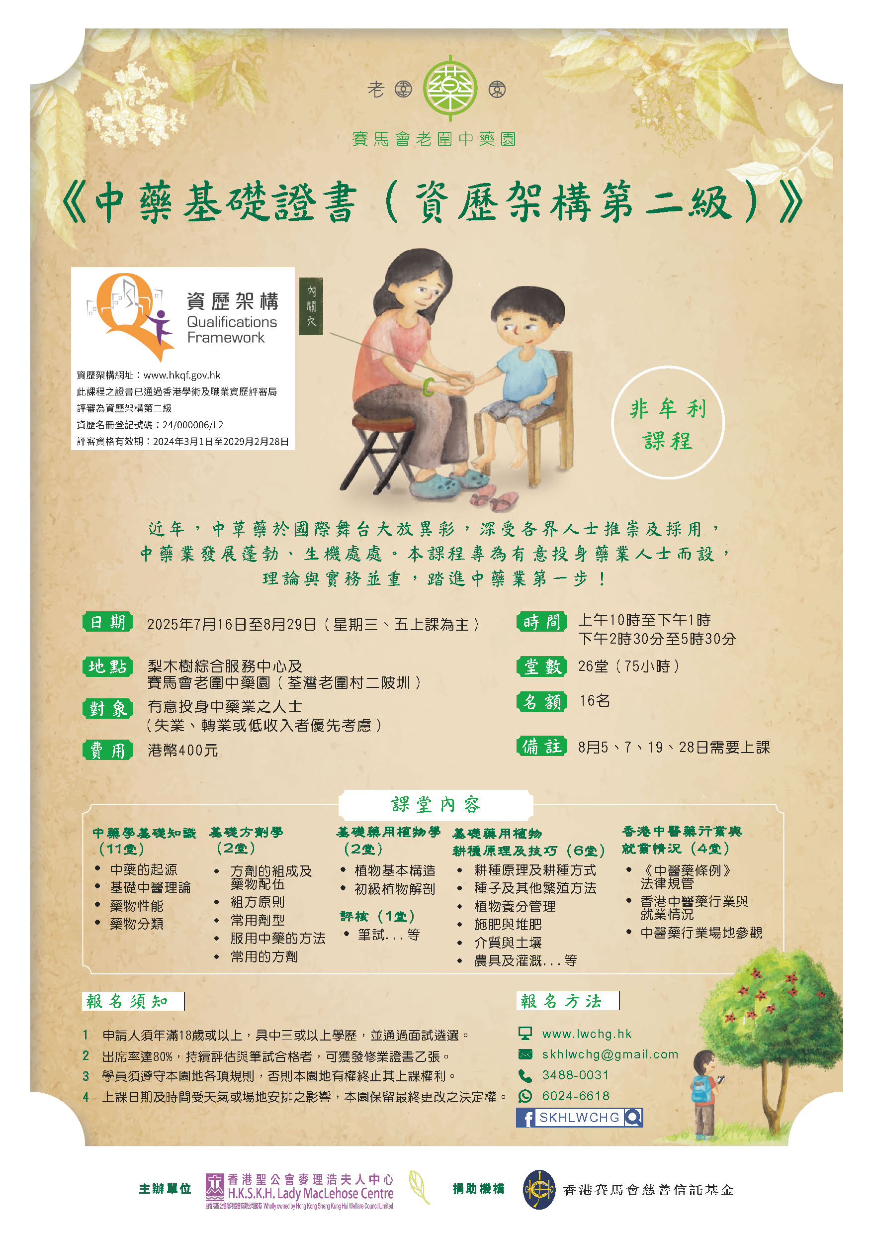 主辦機構:香港聖公會麥理浩夫人中心-賽馬會老圍中藥園